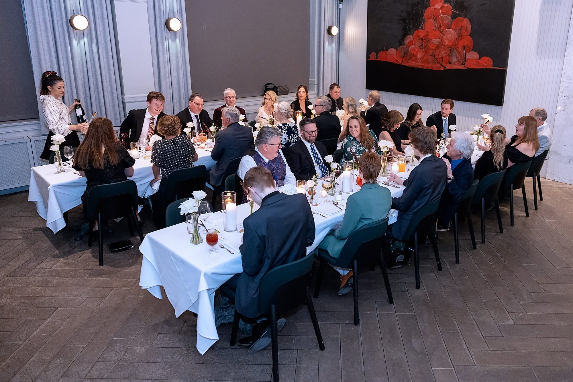 Denise & Tony’s wedding took place on Valentine’s Day at Studios at Vic Park, which is such a unique and stylish space for a ceremony. The day had a relaxed, intimate feel, surrounded by the people who mean the most to them. After the ceremony, we took a short walk a couple of blocks over to Teatro for their reception in the Opera Room. It was the perfect setting for a small celebration – elegant, cozy, and full of love.