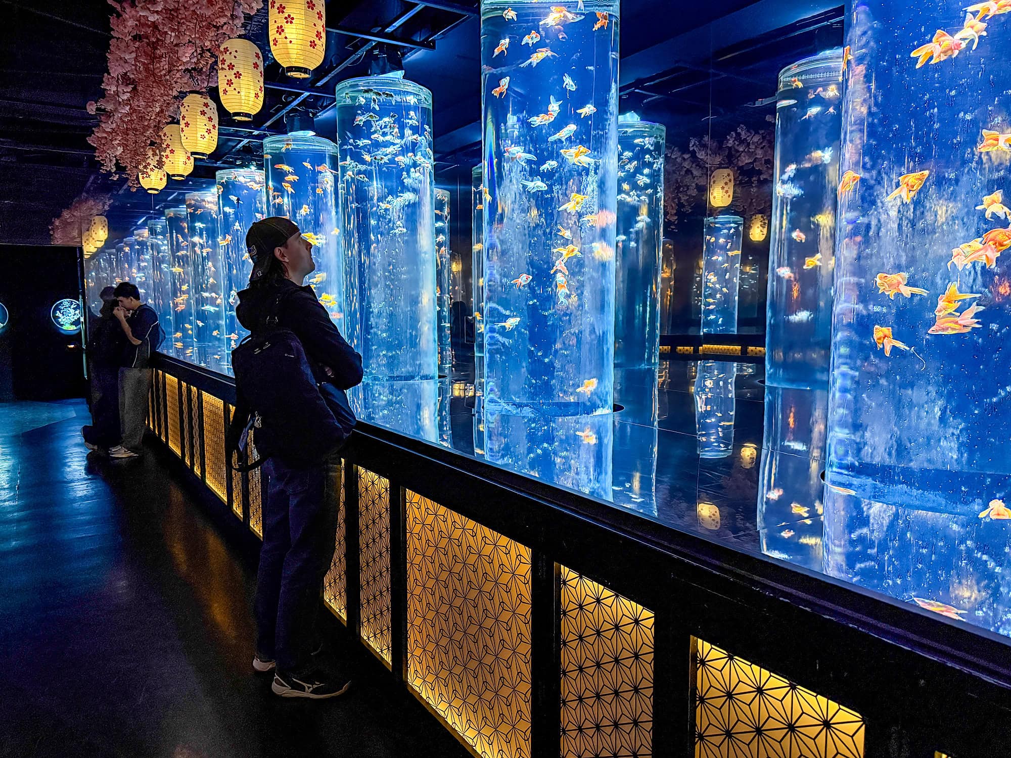 The next morning we did a Go Kart tour! I was nervous about this, but it was a complete blast!! We each had our own vehicle that would go up to 80km/hour. We did the 3 hour tour around Tokyo Bay with Street Kart Tokyo. We followed our guide through the Tokyo traffic with 2 other people. It seemed crazy to us that it’s legal. The highlight was driving on the Rainbow bridge. We crossed it twice going full speed. With the lines on the bridge, it felt like we were in the Mario Kart game. After our tour we visited the beautiful Art Aquarium Ginza. We also took our time strolling through Shinjuku Gyoen National park, where may locals were picnicking under the cherry blossom trees. We spent our evening in Shinjuku. Lots of lights, lots of people, but still quiet. 37 million people in Tokyo and still it is quiet. It is amazing that no one speaks on the train, they even make an announcement about no talking and silence your phones. There are no benches anywhere and you can not find a garbage can to save your life. Everyone packs there garbage home. There is also no eating while walking. If you buy something from a vending machine, you stand beside it and eat. I have never felt more safe anywhere we’ve ever been. The Japanese are a beautiful people – kind, humble and polite. Everything is so efficient, clean and high functioning.