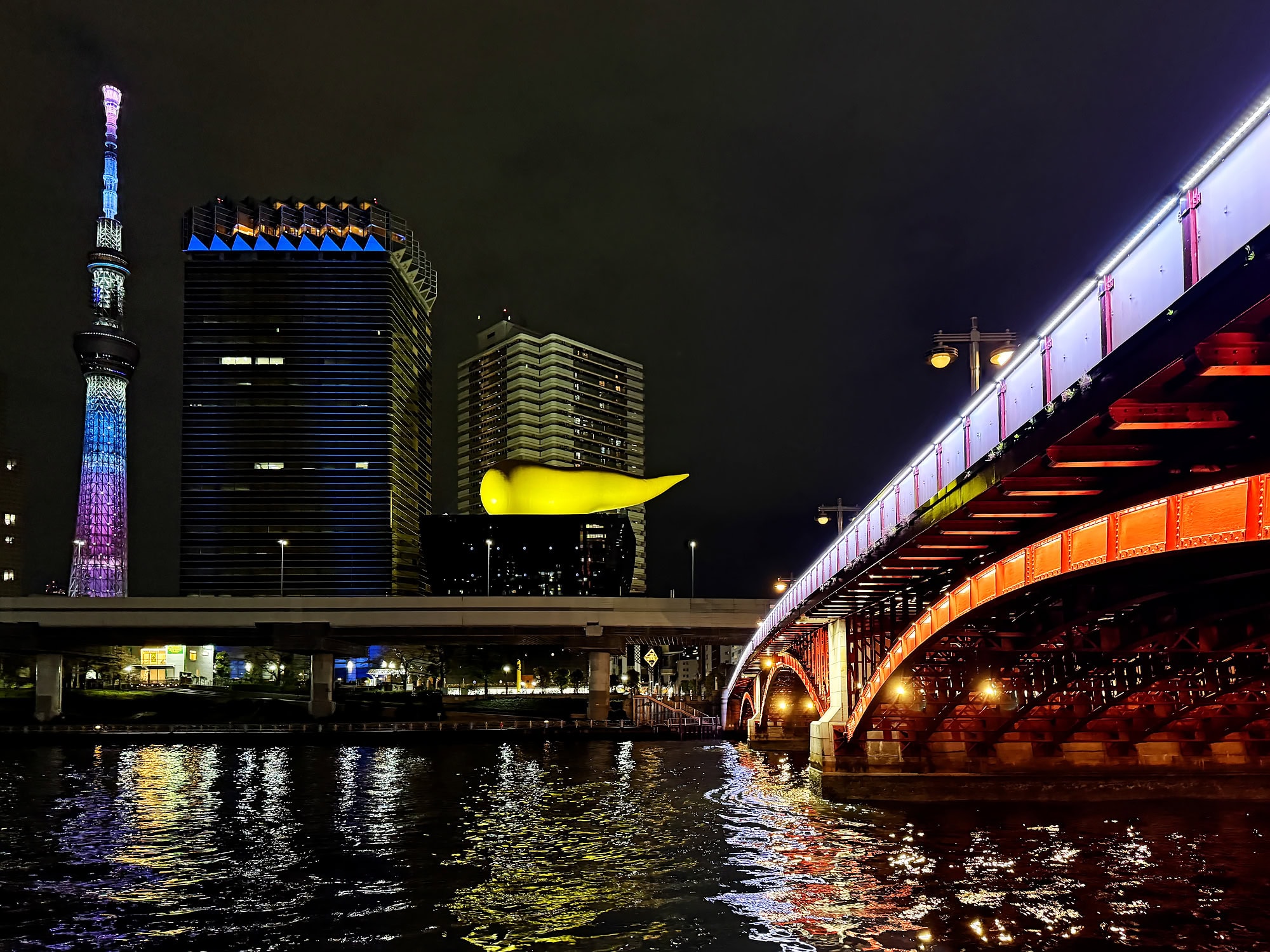 We spent a good chunk of our next morning in a Donki store. I don’t even know how to describe this store. It has everything and anything. Many are open 24/7 and they play this theme song in the store that gets stuck in your head. You will find all the viral cosmetics, beauty products and gadgets here. This day we also visited Guitar street. Both sides of the street were lined with guitar stores. I found some things for the boys and Cory found a cable that he’s been unable to find anywhere. Lastly, we ended the day in Akasuka, another busy spot! We took in a Sumo Show that night that was so good! They were funny, engaging and we learned a lot about sumo. After the show we walked through a much quieter Akasuka and down to the river to see Tokyo Skytree and the “Golden Turd”.